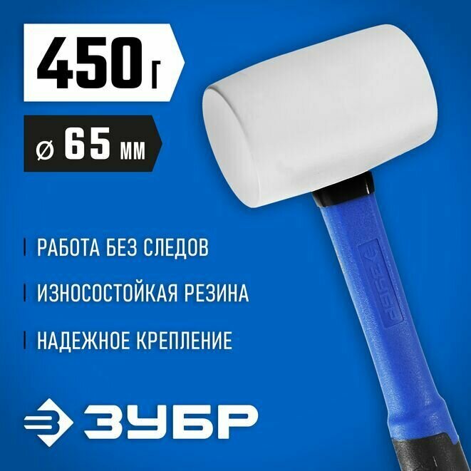 Купить Киянка резиновая белая с фиберглассовой ручкой 450 г ЗУБР