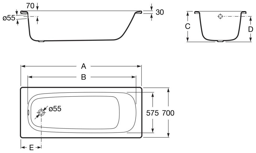 Стальная ванна Roca Contesa 160x70 23596000O без антискользящего покрытия