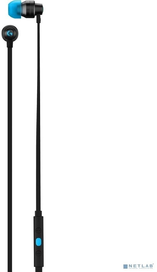 Гарнитура игровая Logitech G333, для компьютера и игровых консолей, вкладыши, черный / голубой [981-000924]
