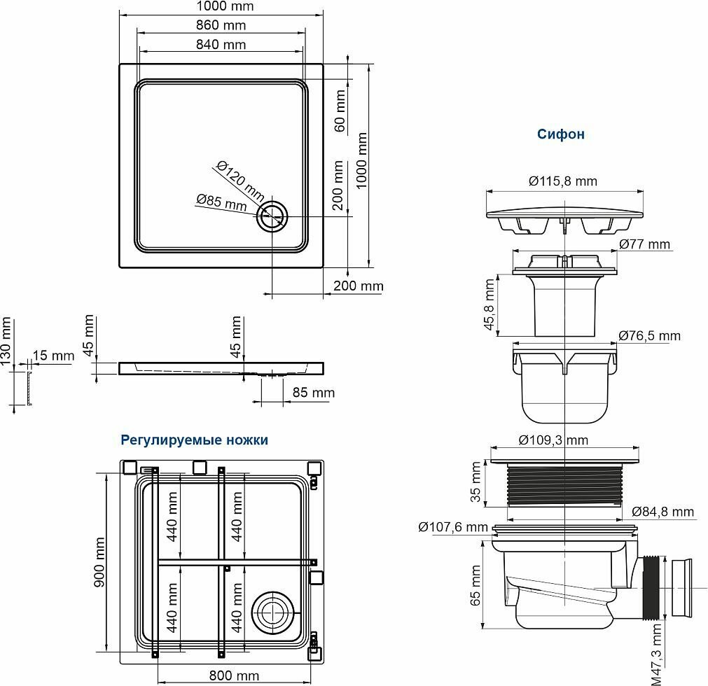 | Комплект | ножки + экран + слив |