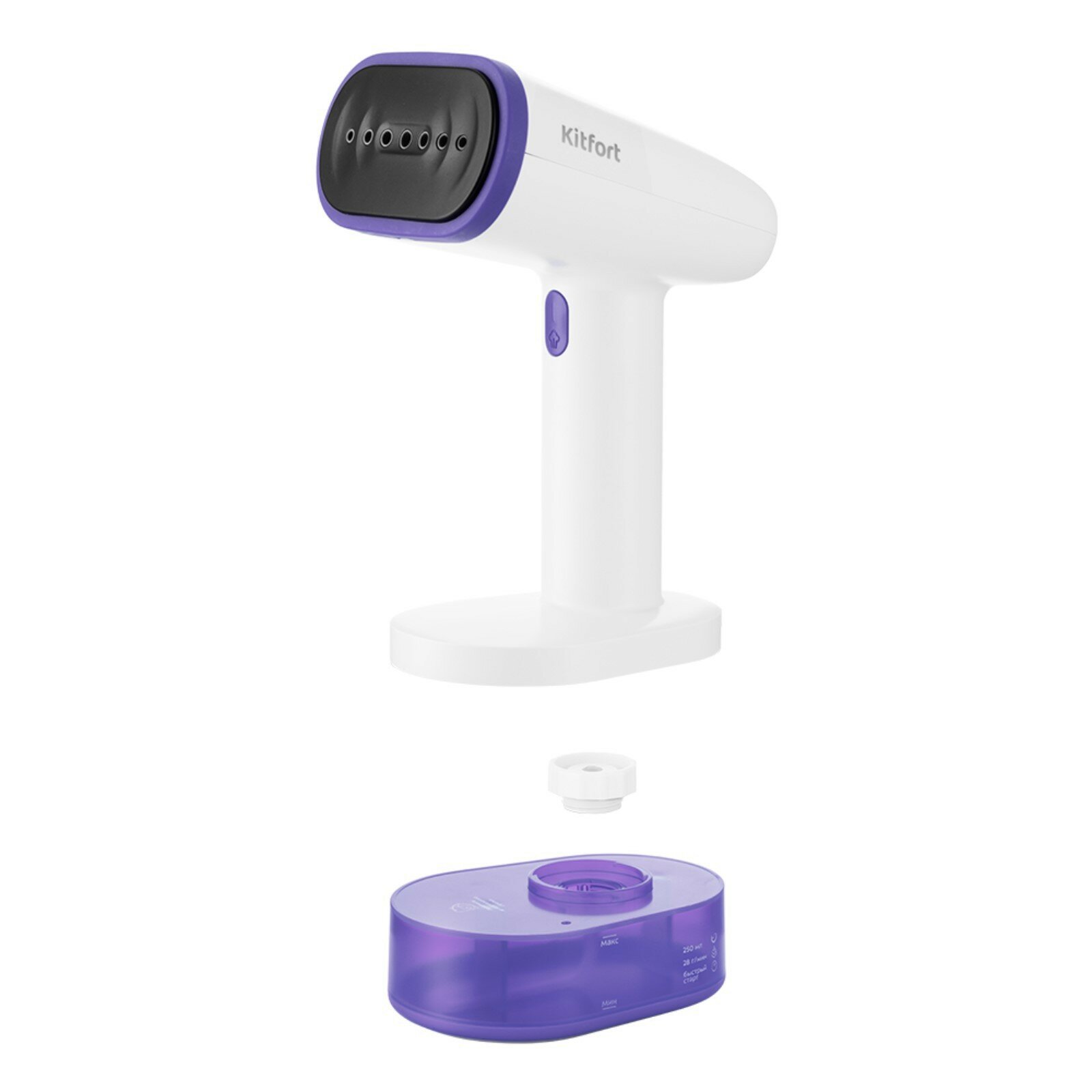 Отпариватель Kitfort Кт-985-1, ручной, 1600 Вт, 250 мл, 28 г/мин, бело-фиолетовый Kitfort 7602836 .