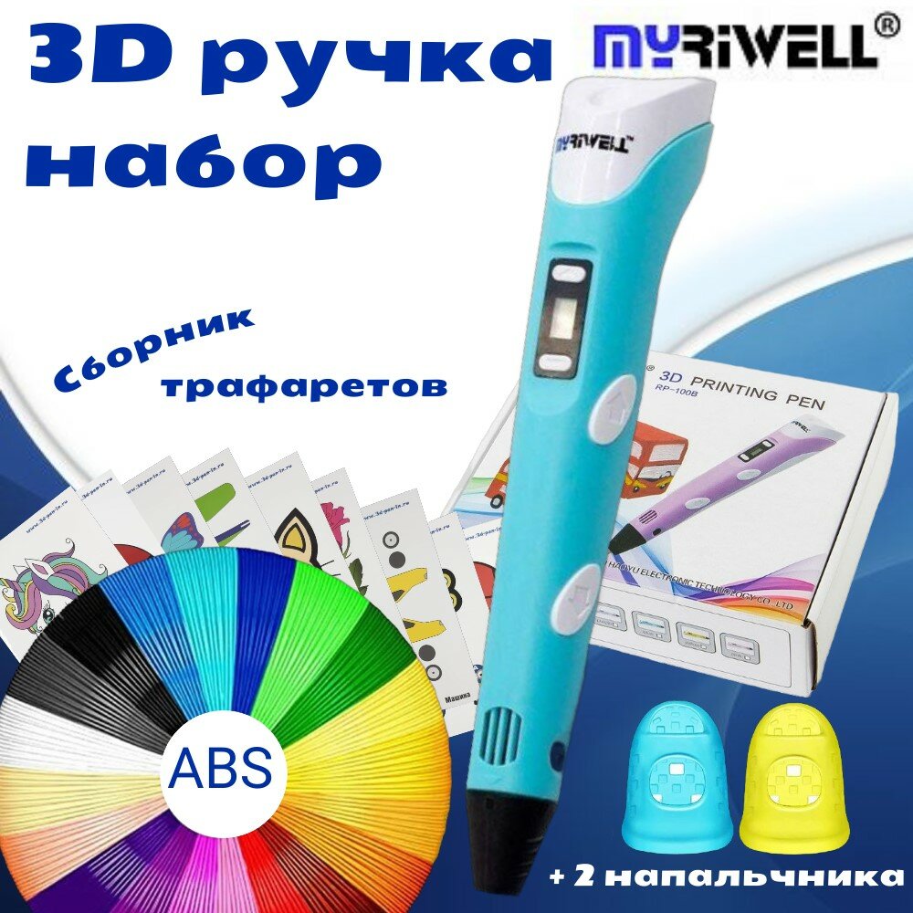 Купить 3D ручка Myriwell_RP100B (150м ABS пластика + трафареты 3d-pen-in) голубой.