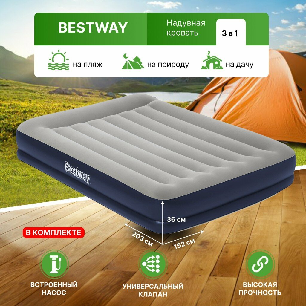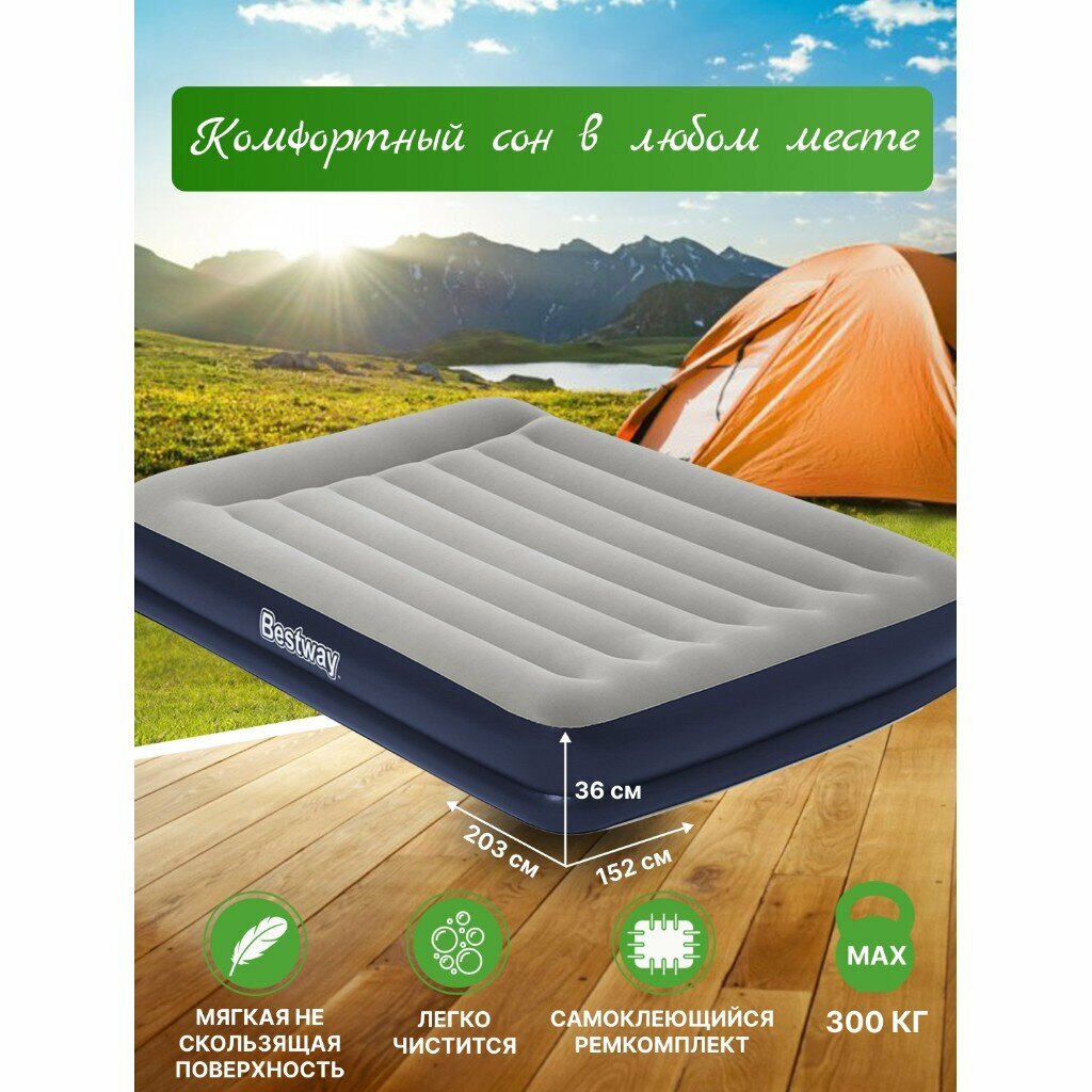 Матрас надувной Bestway, 203х152х36 см, 67725, насос встроенный, электрический, флокированный, с сумкой, 300 кг интересное:
