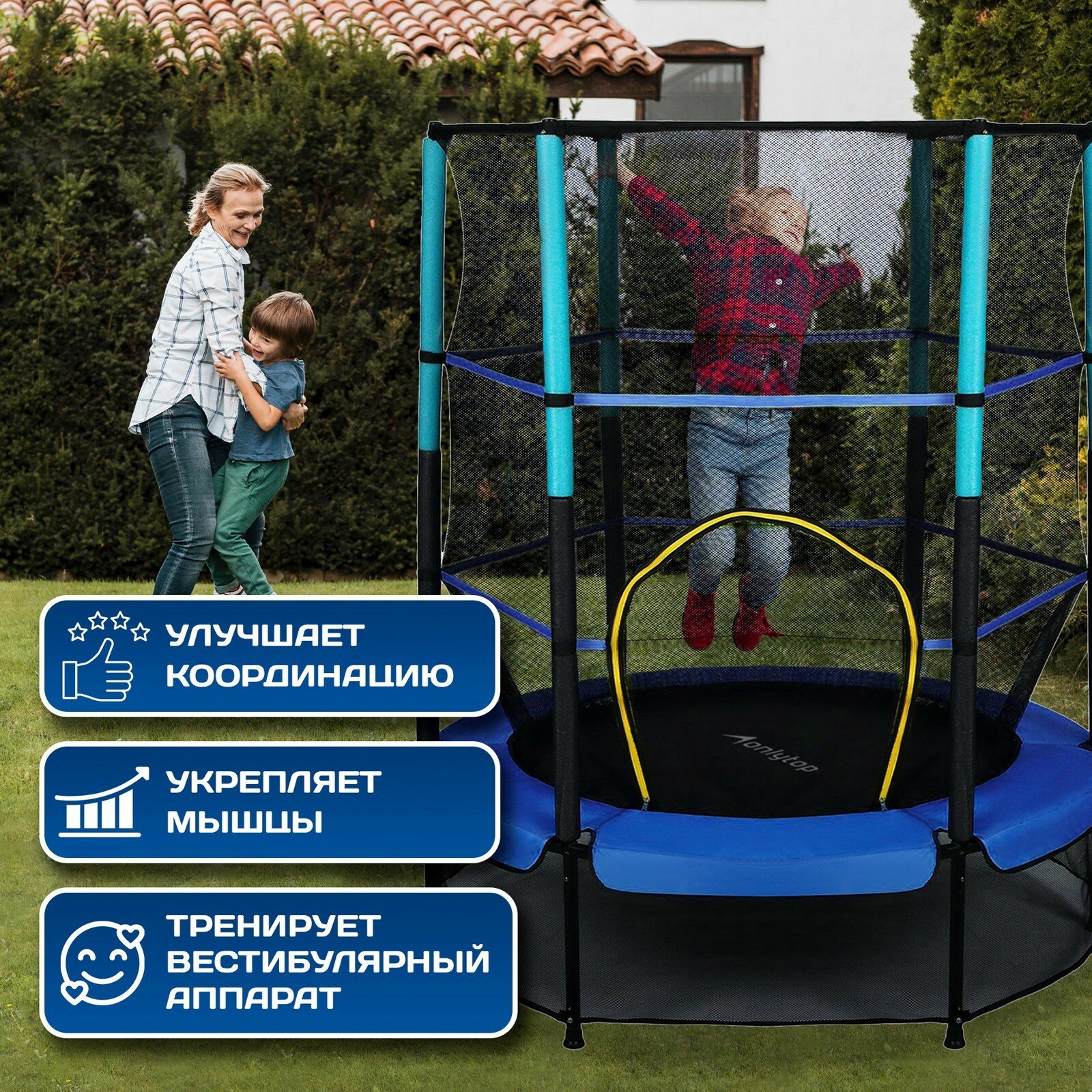 Батут ONLYTOP, d=140 см, высота сетки 145 см, цвет синий интересное: