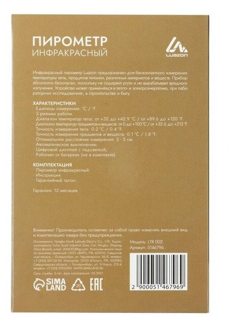 Пирометр бесконтактный LUAZON HOME LTR-002 интересное: