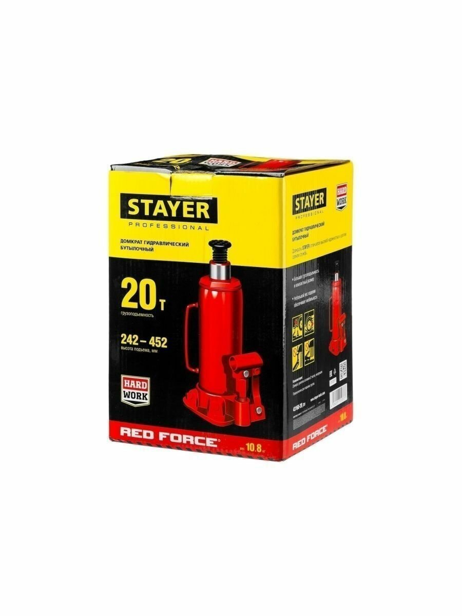 Домкрат бутылочный гидравлический 20 т, 242-452 мм STAYER интересное: