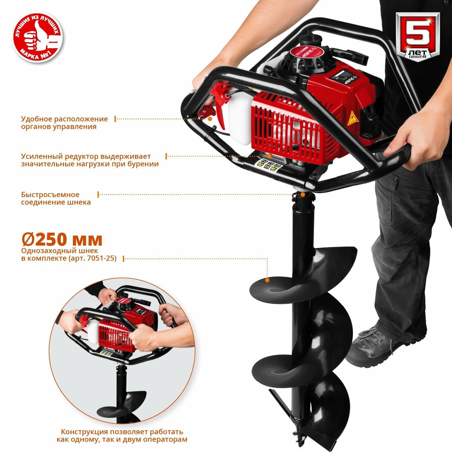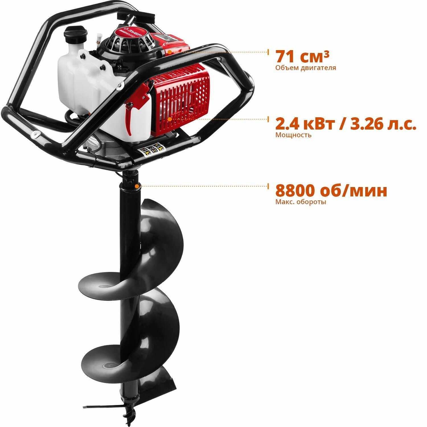 Мотобур (бензобур) со шнеком, d:60-300 мм, 71 см3, 2 оператора, ЗУБР.