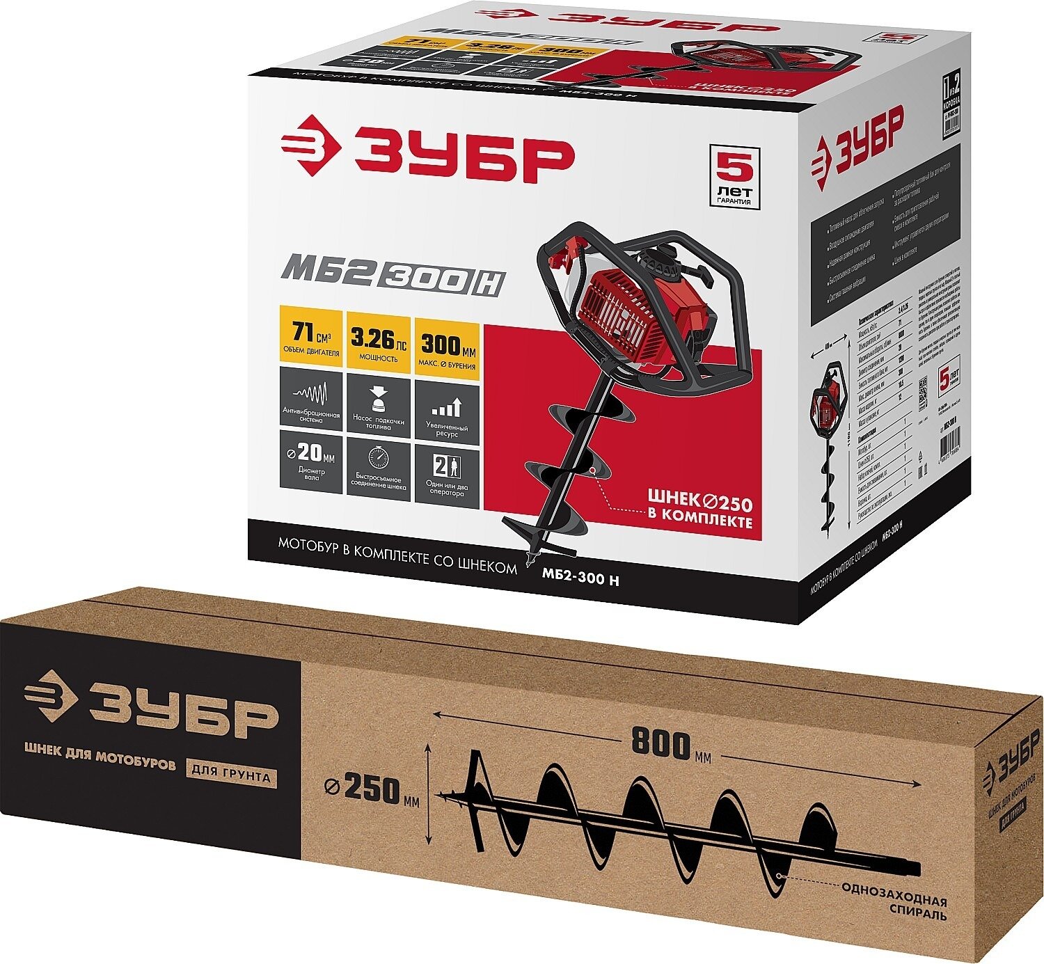 Мотобур Зубр МБ2-300 Н профес. 2-х такт. 2400Вт 3.26л.с. 71см3 8800об/мин (бур в компл.)
