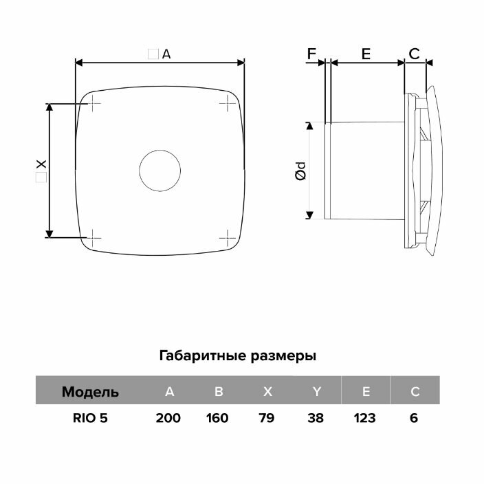RIO 5C, Вентилятор осевой вытяжной с обратным клапаном D 123