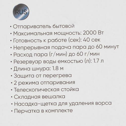 | Максимальная подача пара | 60 г/мин |