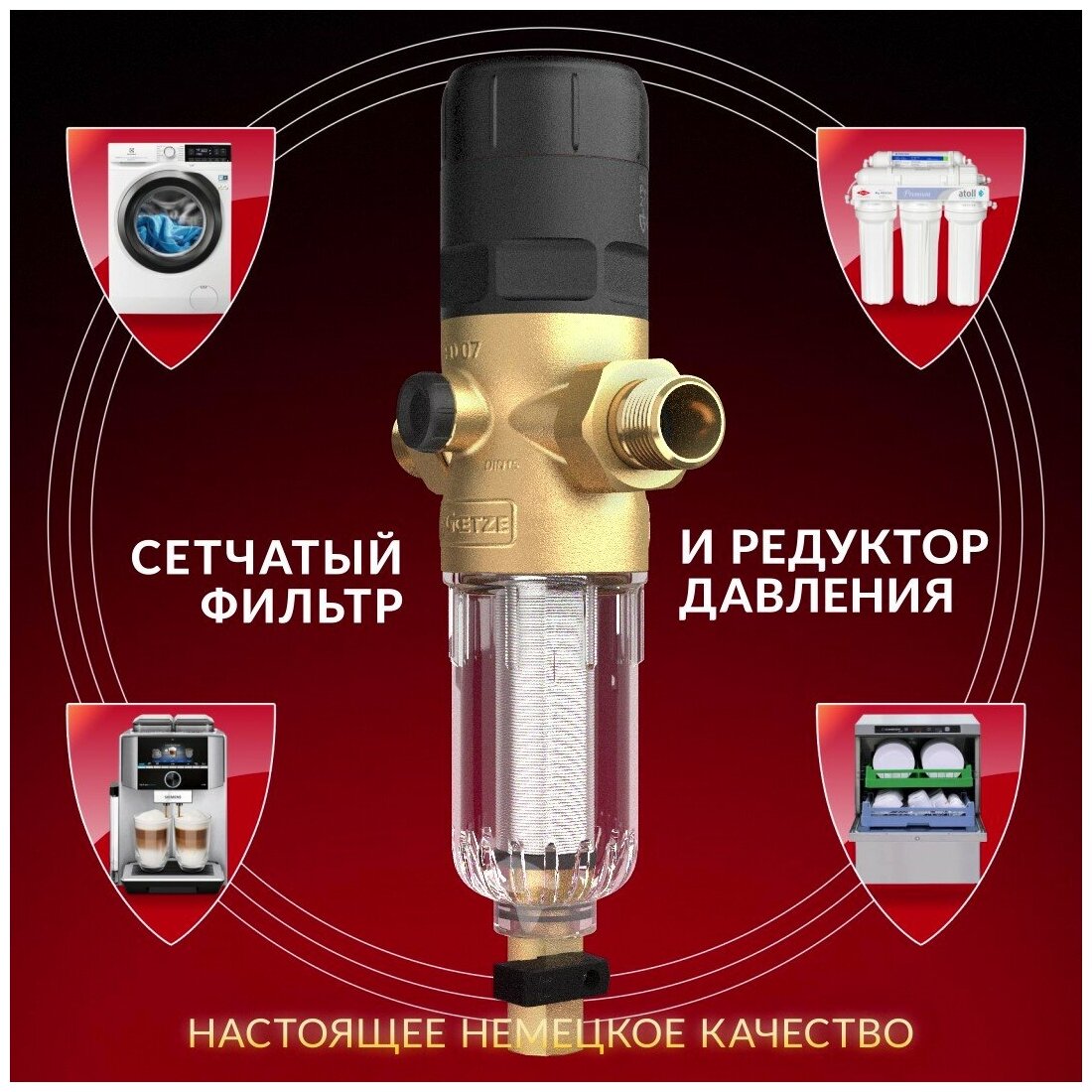 Фильтр Goetze FD07-3/4C (SP) для холодной воды, с промывочным краном и редуктором давления