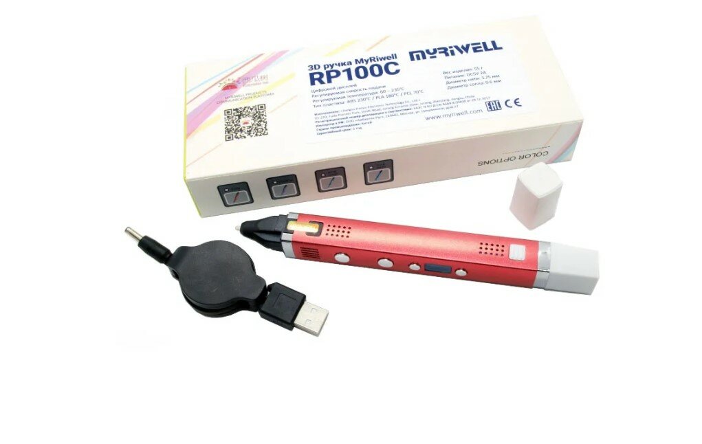 3D ручка MyRiwell RP100C, (цвет: красный) интересное: