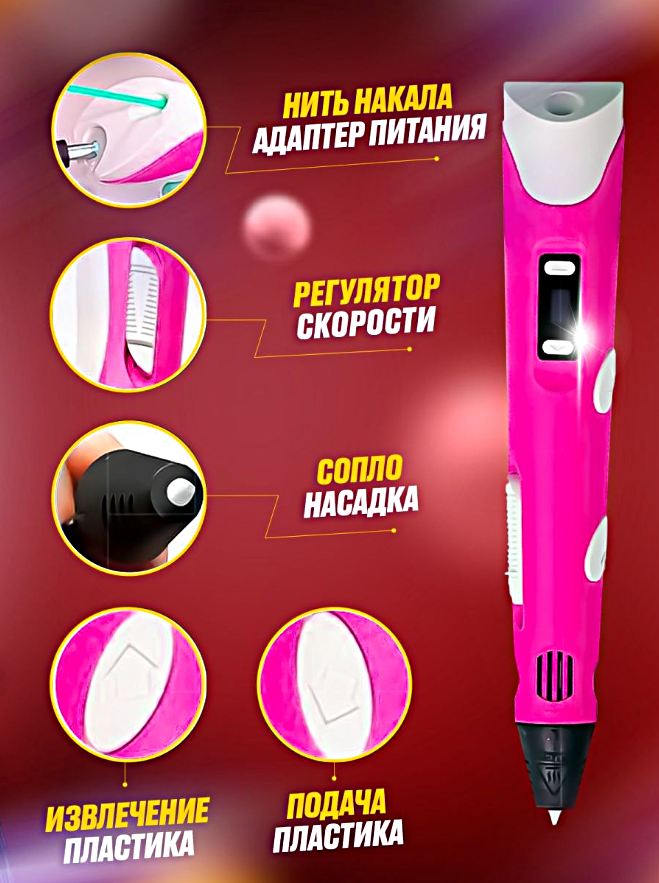 Сохранить3Д Ручка детская 3DPEN-2, 3д ручка для творчества 2-го поколения, Набор для творчества, Розовый, Pricemin интересное: