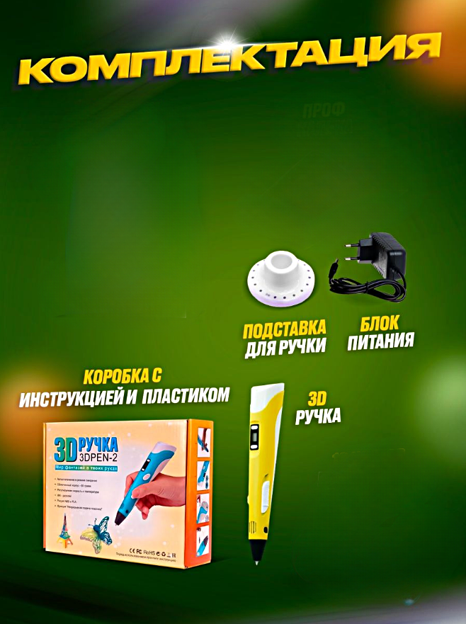 Сохранить3Д Ручка детская 3DPEN-2, 3д ручка для творчества 2-го поколения, Набор для творчества, Желтый, Pricemin интересное: