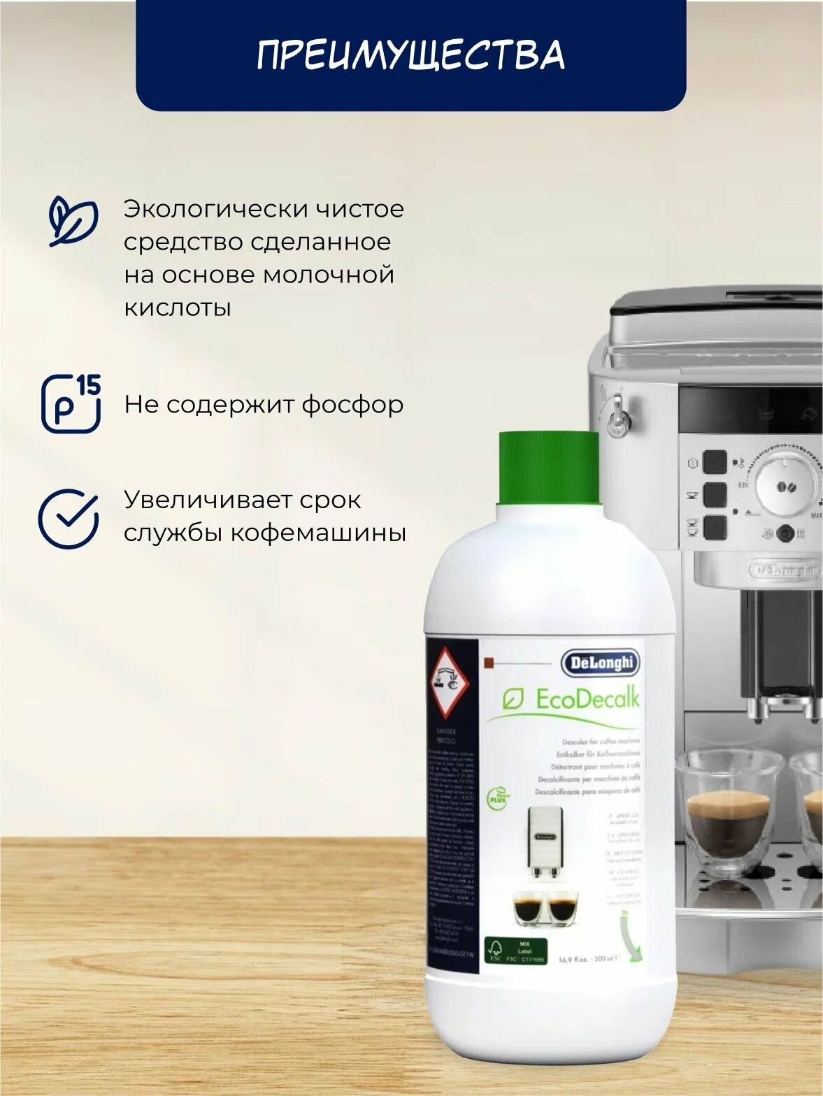 Чистящее средство от накипи De'Longhi EcoDecalk DLSC500 , 1 уп. , 670 г , 500 мл интересное: