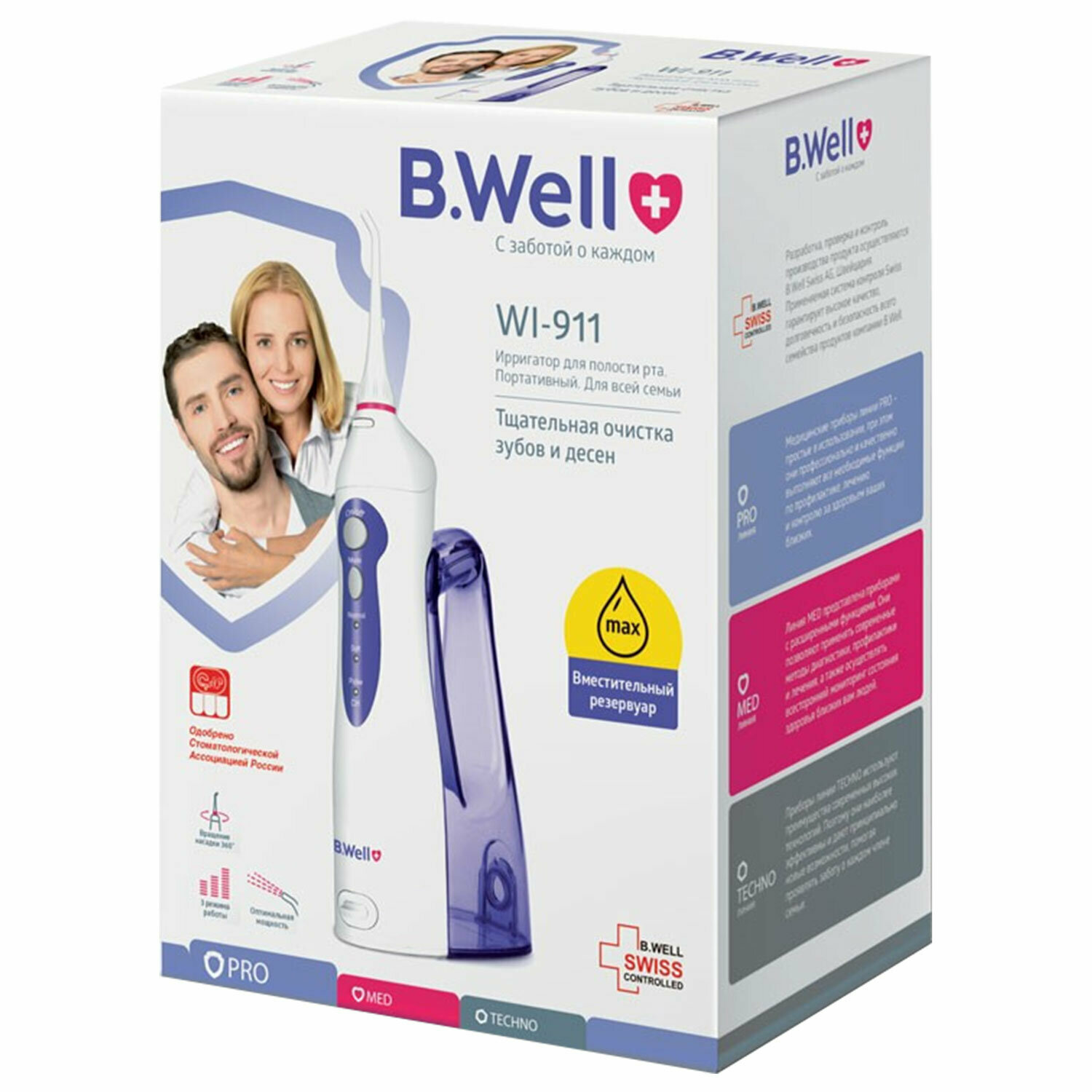 1 Ирригатор для полости рта (НДС 10%) B.WELL WI-911, портативный, емкость резервуара 0,33 л, 2 насадки, белый интересное: