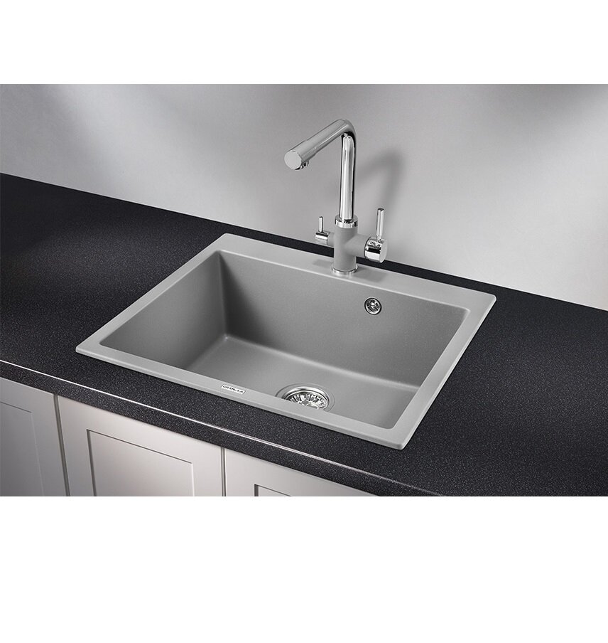 Мойка для кухни врезная каменная Dr. Gans Smart ОЛИВИЯ-620, цвет серый, с крылом, прямоугольная, 620х480х197 мм