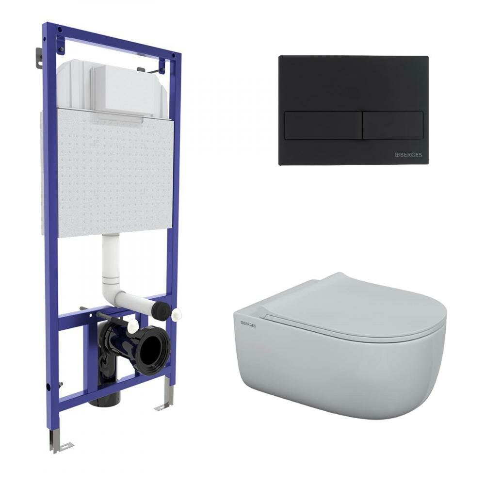 Купить Berges Комплект BERGES: инсталляция NOVUM кнопка L5 черная Soft Touch, унитаз EGO XL Rimless, сиденье дюропласт Toma Slim SO, микролифт, быстросъем 043204