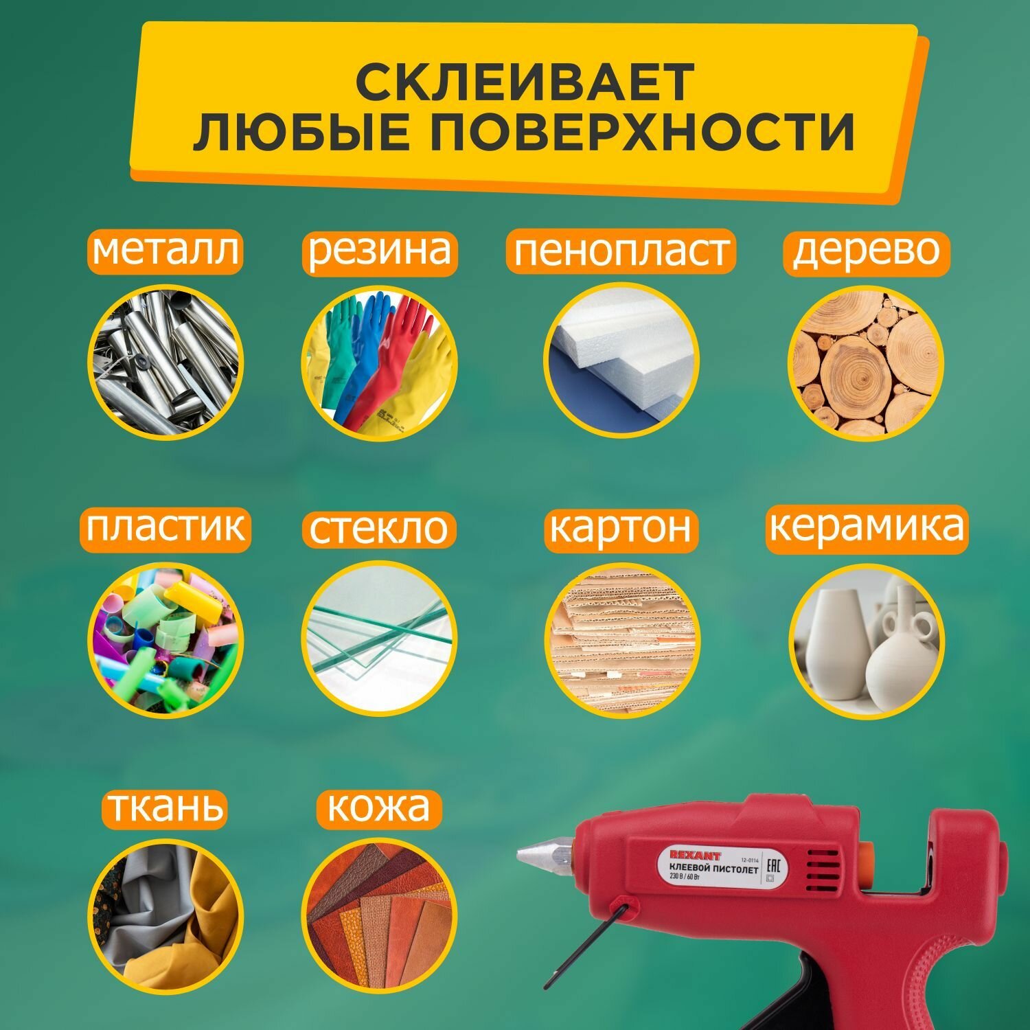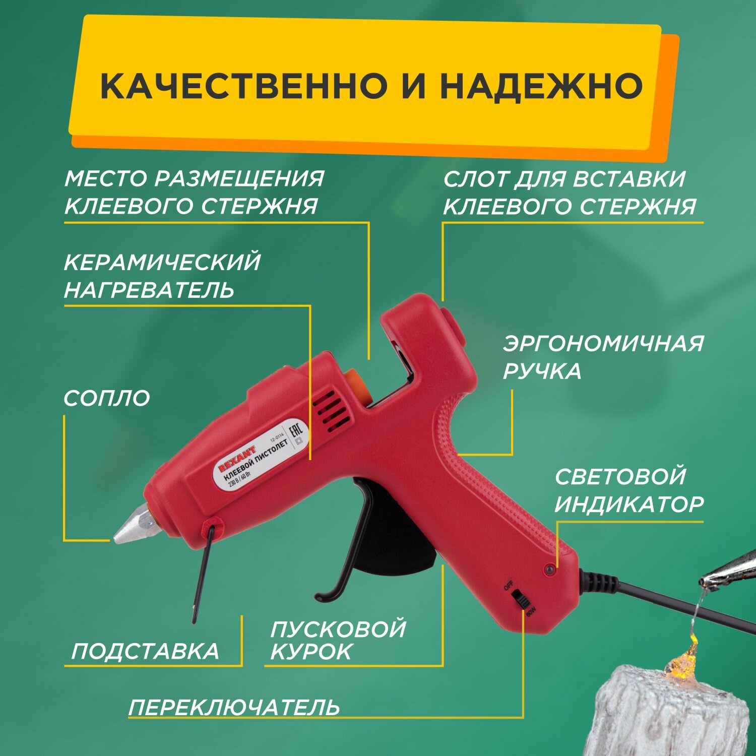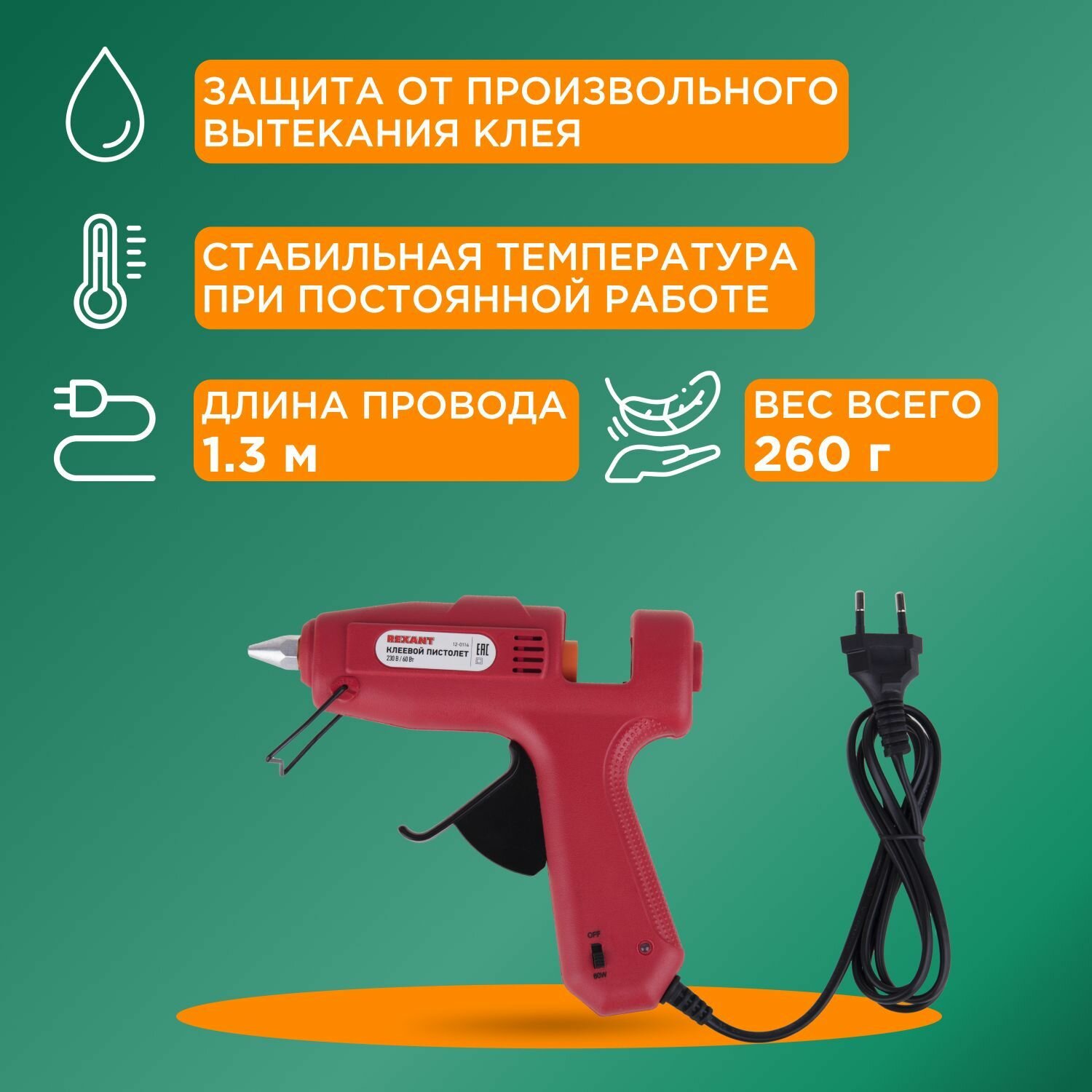 Клеевой пистолет REXANTсо световой индикацией для стержней 11 мм, 60 Вт интересное: