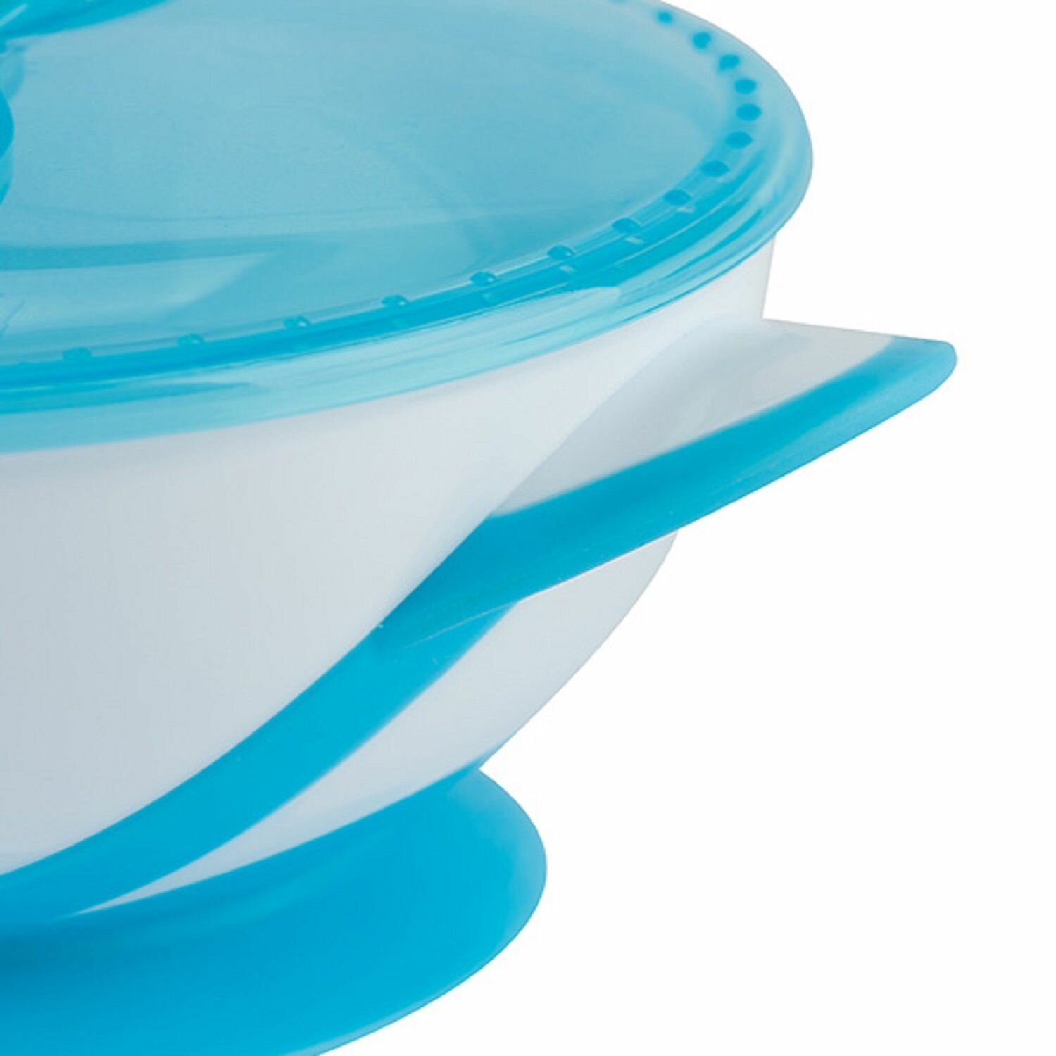 Тарелочка Babyono с крышкой и ложечкой на присоске Голубая 1063