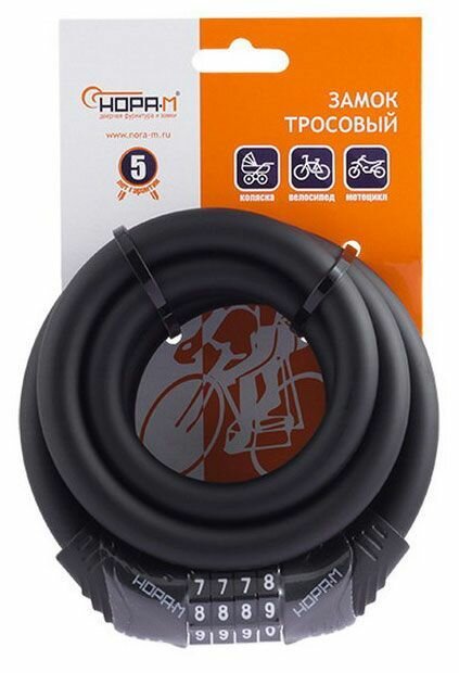 Замок велосипедный кодовый нора-м №21 размер ф12х1500мм черный (18296)
