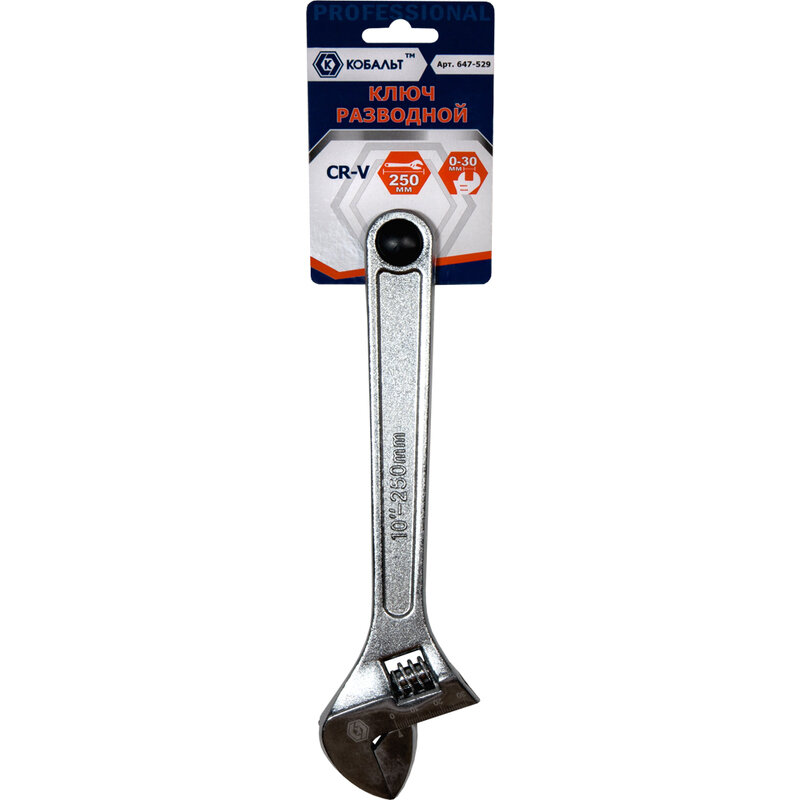 Ключ разводной кобальт 250 мм, ширина захвата 30 мм, CR-V (1 шт.) подвес 647-529