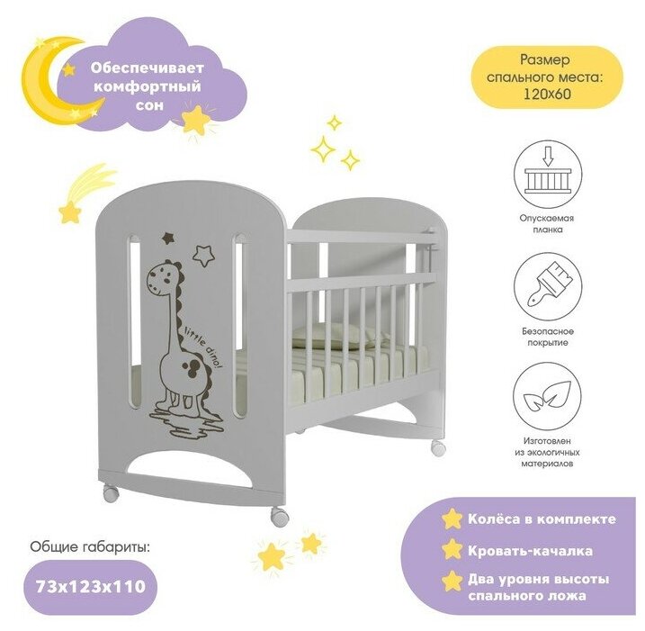 Кровать детская DINO колесо-качалка, цвет белый./В упаковке шт: 1