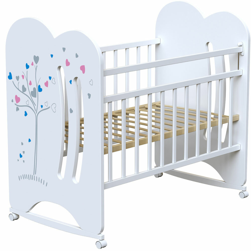 Кроватка детская для новорожденных ВДК WIND TREE колесо-качалка, массив березы, белый