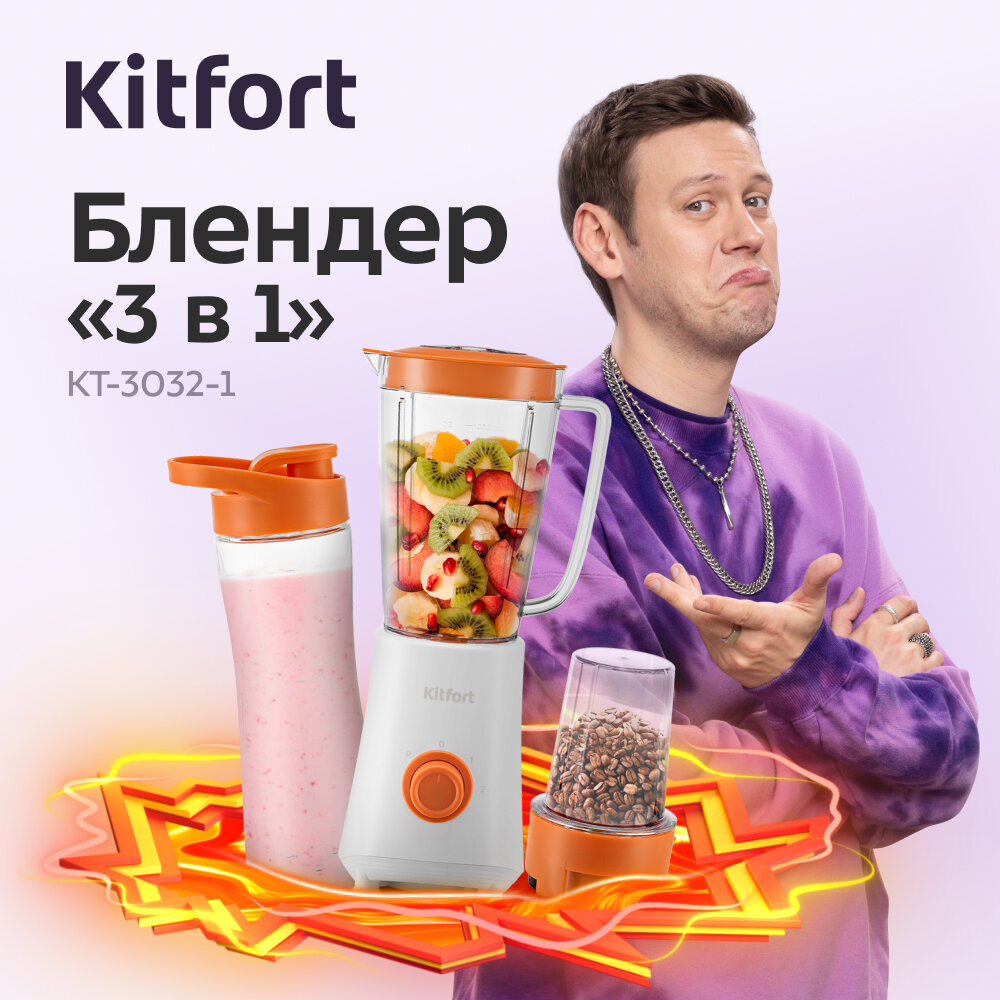 Купить Блендер Kitfort "3 в 1" КТ-3055-1 бело-оранжевый