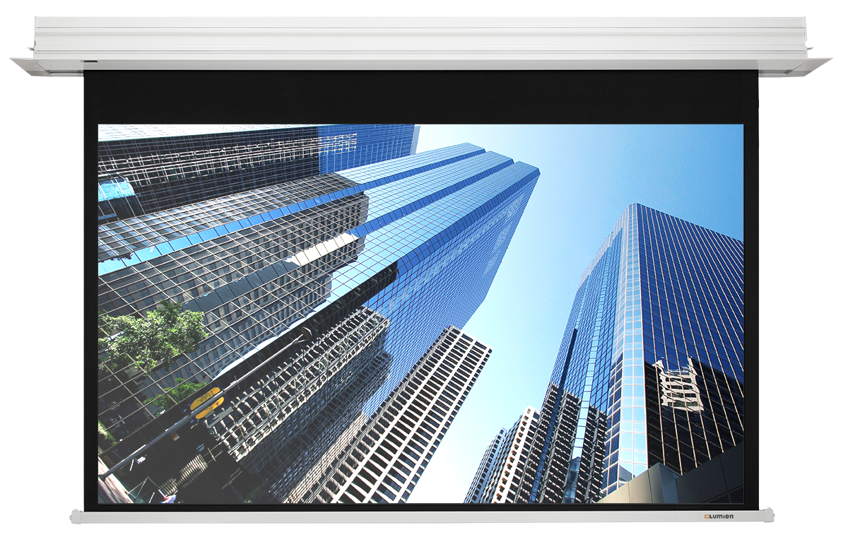 Купить [LMRC-100103] Встраиваемый экран с электроприводом Lumien [Master Recessed Control] 183х223 см (раб.область 120х213 см) (96") MW Fiberglass чёрн.кайма по периметру, черн.кайма сверху 58 см,триггер,RS232,IR,RF управл. в комплекте, цвет корпуса белый 16:9