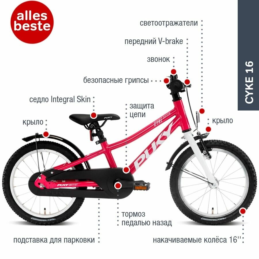 PUKY Двухколесный велосипед CYKE 16 Ягодный интересное: