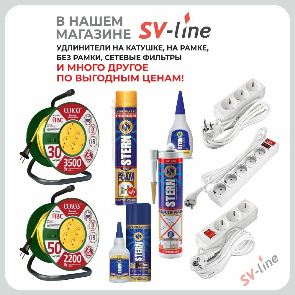 Ниже Вы можете прочитать отзывы на Бытовой удлинитель 3500 Вт 3гн. ПВС 3м Союз 481S-8303, ознакомится с подробными характеристиками, посмотреть интересные обзоры и фотографии на Бытовой удлинитель 3500 Вт 3гн. ПВС 3м Союз 481S-8303.