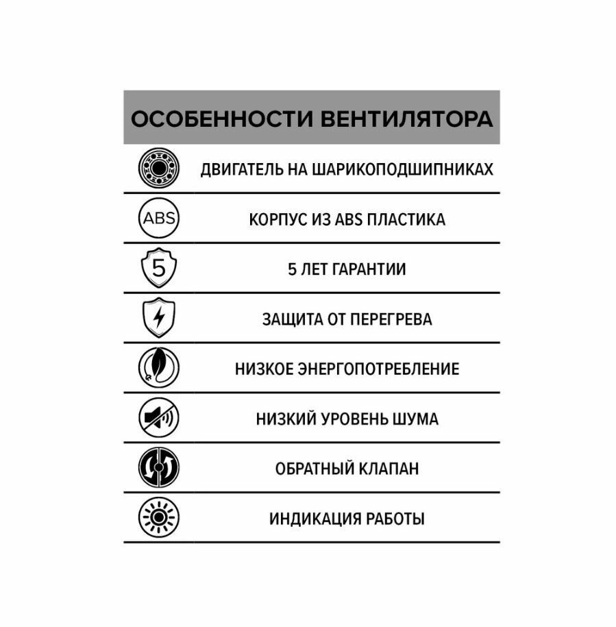 Вентилятор осевой / вытяжка в ванную / вытяжка в туалет d100 мм, белый