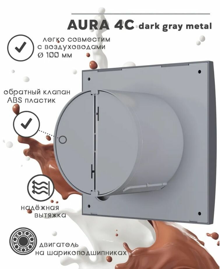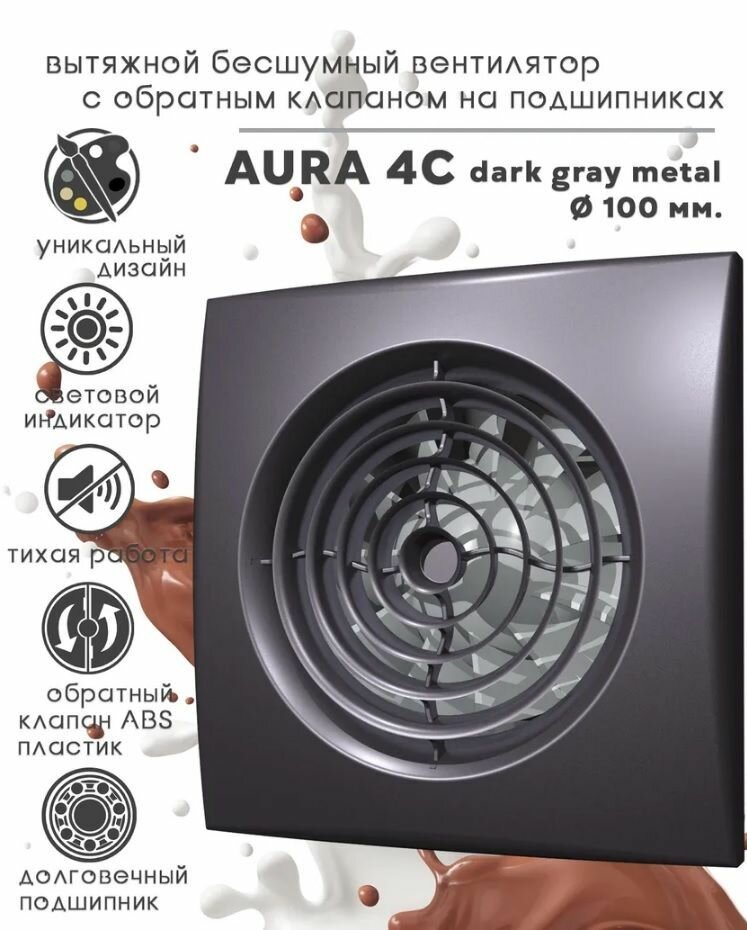 Вентилятор AURA 4C серый металл с обратным клапаном /D100мм