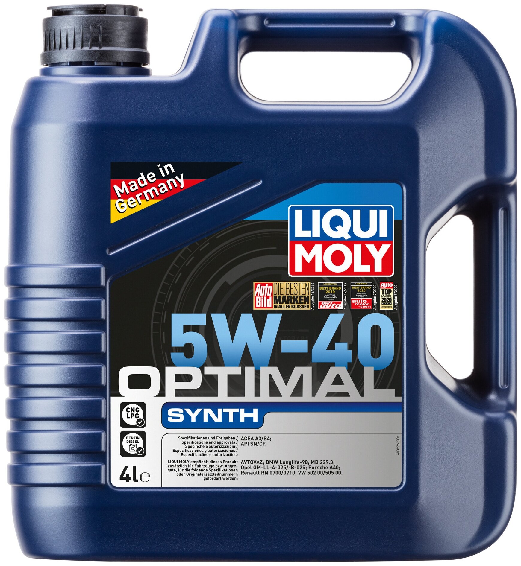 Моторное масло LIQUI MOLY Optimal Synth 5W-40, 4 л, артикул 3926