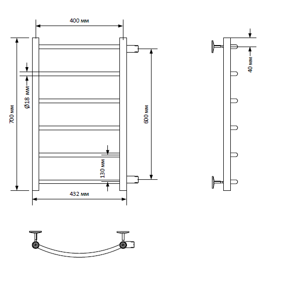 Полотенцесушитель водяной Indigo Arc 700х400, м/о 60 боковое подключение, хром