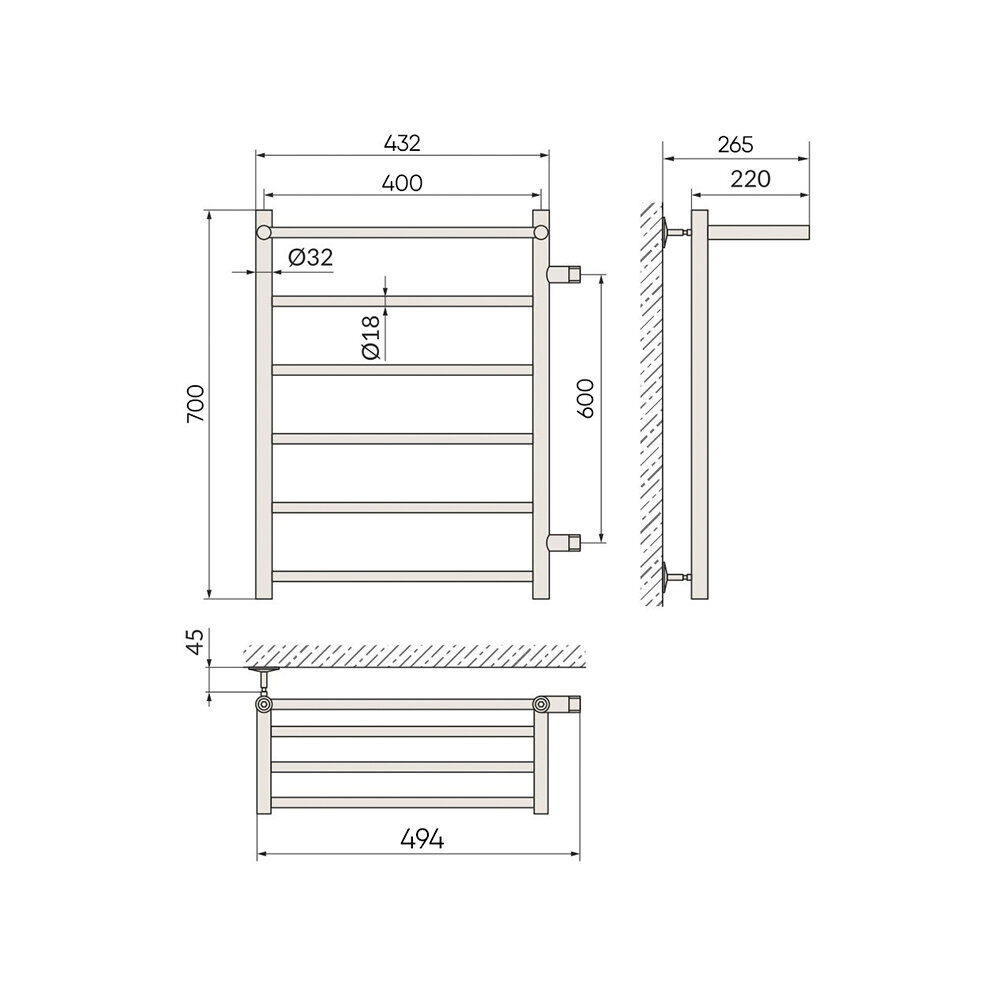Водяной полотенцесушитель Aquanet Mauro(г2) 800x500