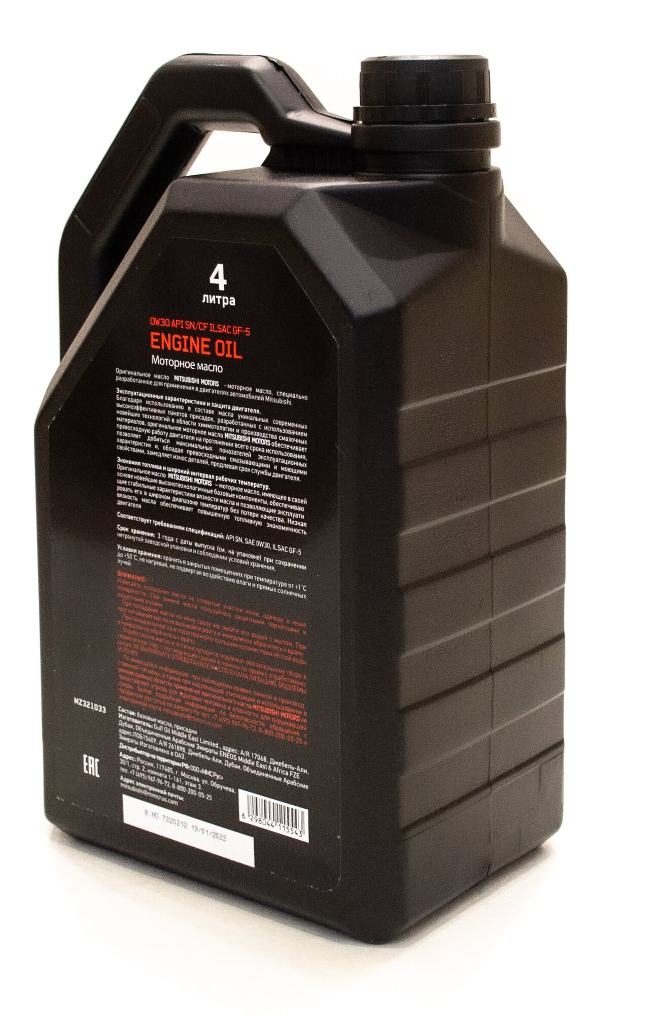 MZ321033_масло мот.! ENGINE OIL 0W30 4L синт.\ API SN/CF, ILSAC GF-5 MITSUBISHI