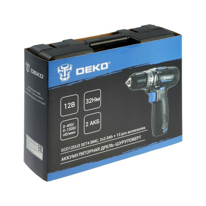 Купить Дрель-шуруповерт DEKO GCD12DU3 SET 4 в кейсе + оснастка 13 шт, 2*2 А·ч 063-4140