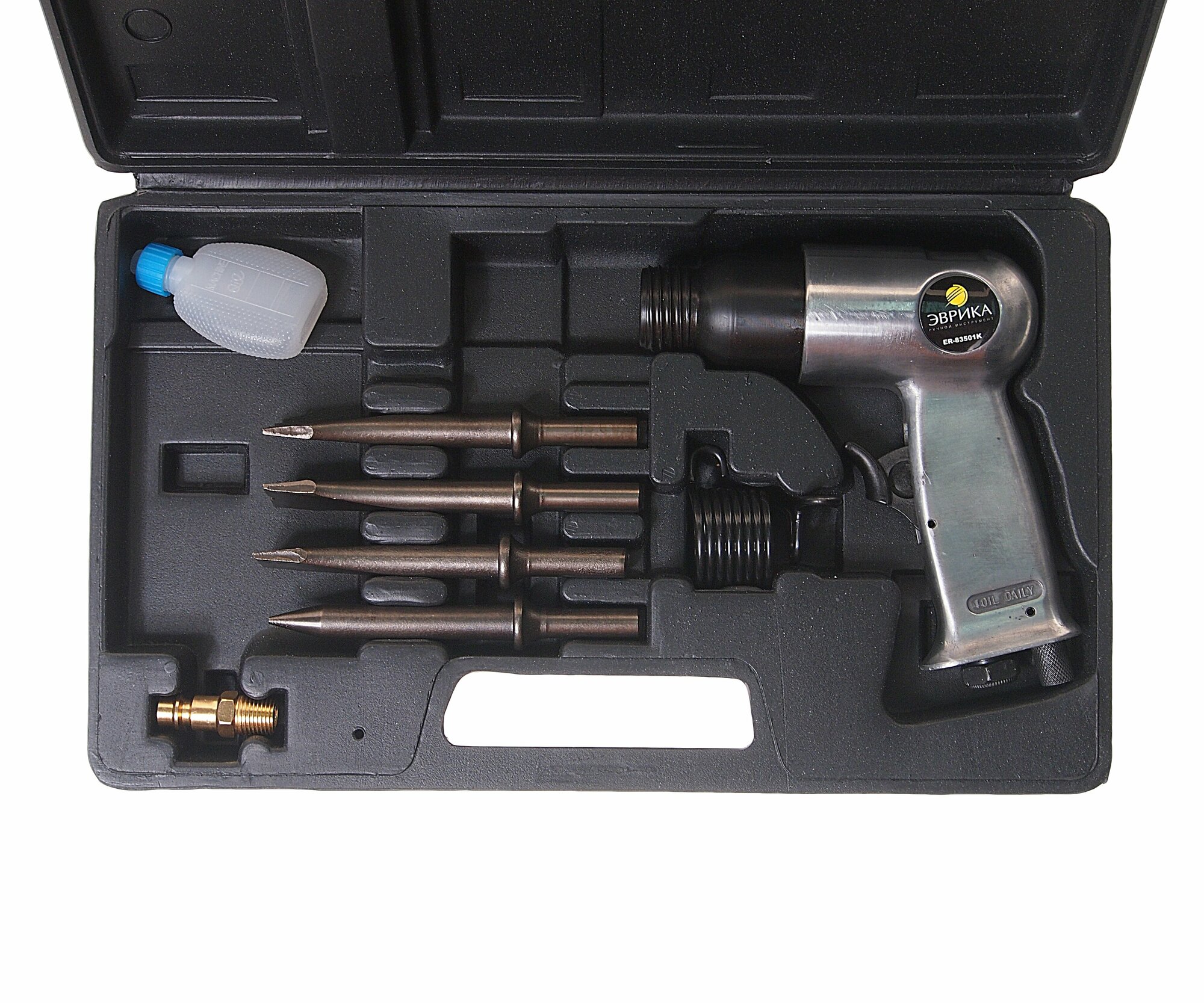 ER-83501K Пневмомолоток ER-83501K с набором зубил 8 предметов 4500 ударов/мин 150мм в кейсе эврика 1/10 интересное: