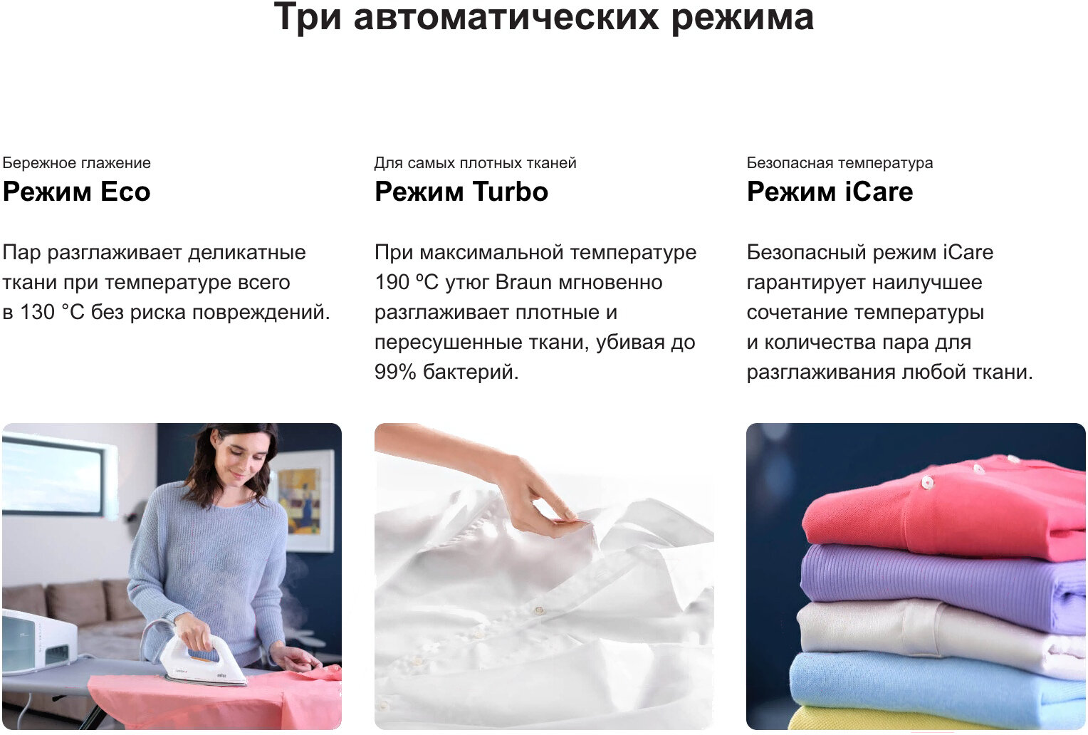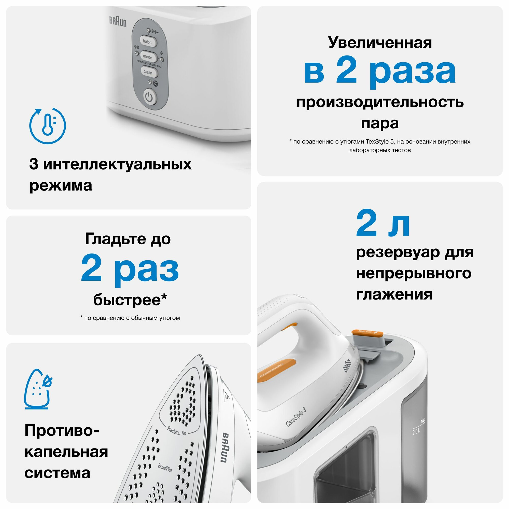 Braun Утюг IS3157BL Гладильная система, 2400Вт, 125 г мин, белый