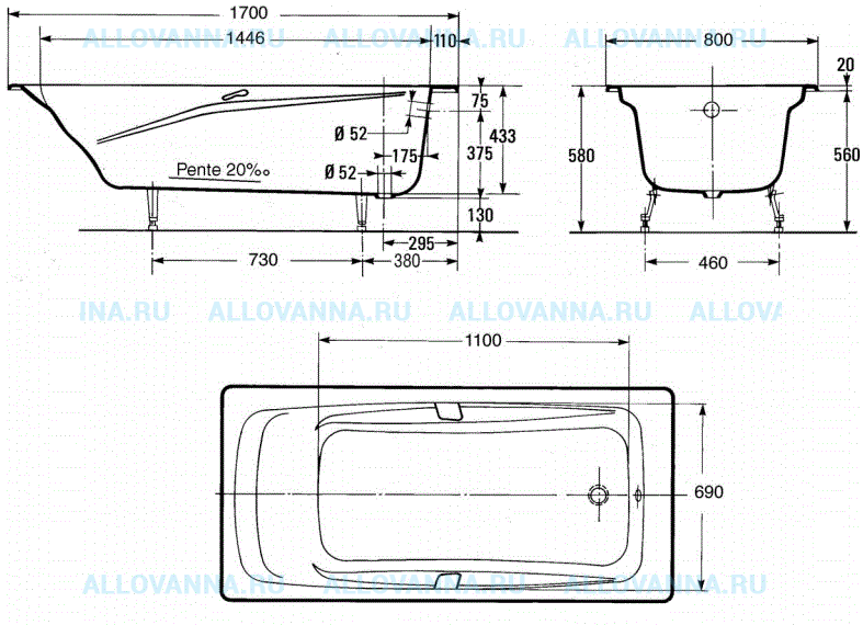 Поверхность эмали гладкая, без волнистости. Цвет ванны именно белый! Симпатичный дизайн! Ширина дна ванны хорошая, в нашем размере ванные 170*80мм.! |