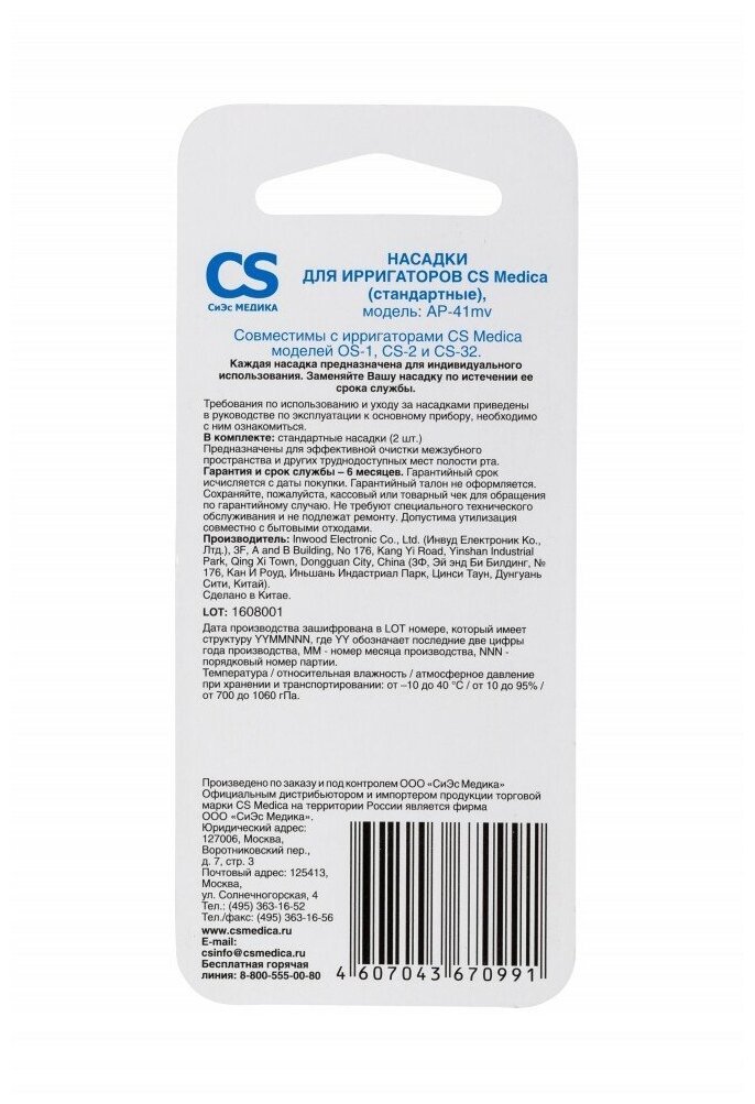 Насадки CS Medica AP-41mv (стандартные)(2 шт.)для ирригаторов OS-1, CS-2, CS-32