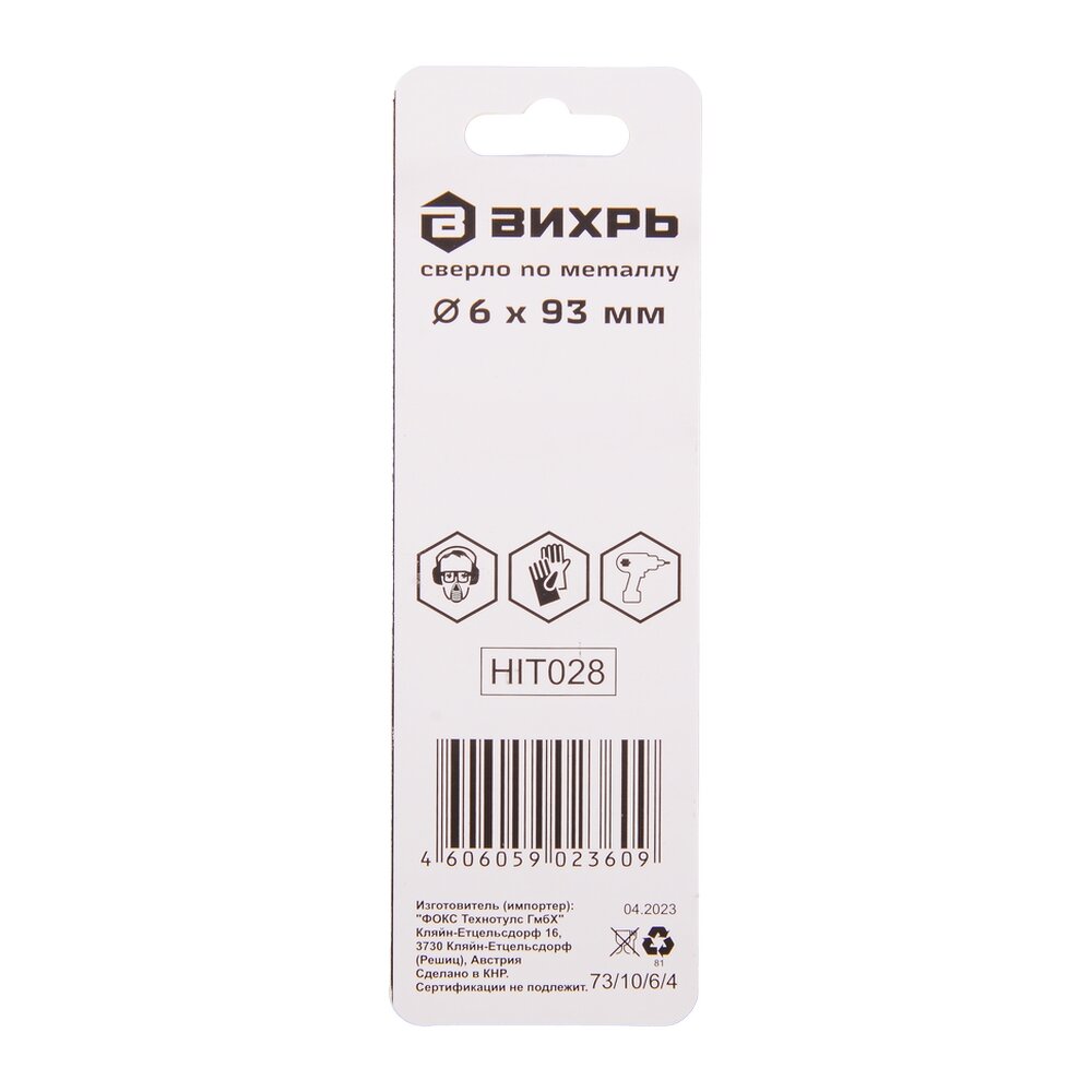 Сверло по металлу Вихрь 6 мм, P6M5 (1 шт. в блистере), 73/10/6/4 интересное:
