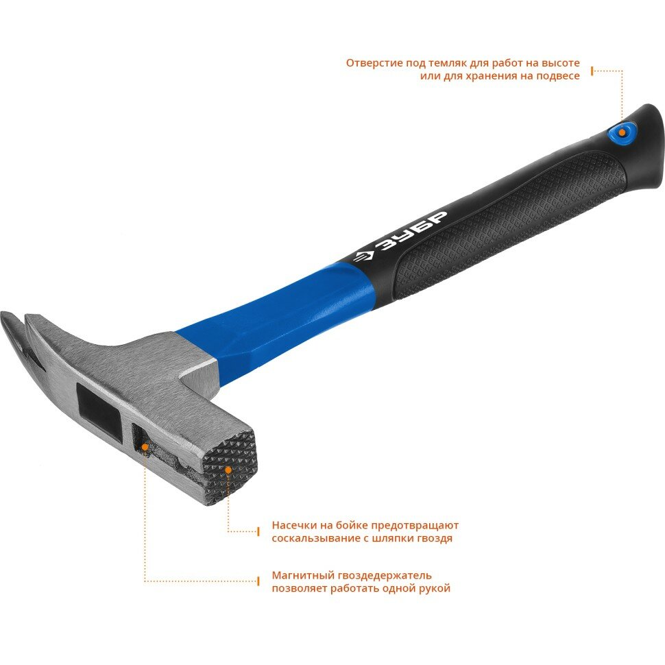 Молоток кровельщика ЗУБР с фиберглассовой рукояткой 560 г