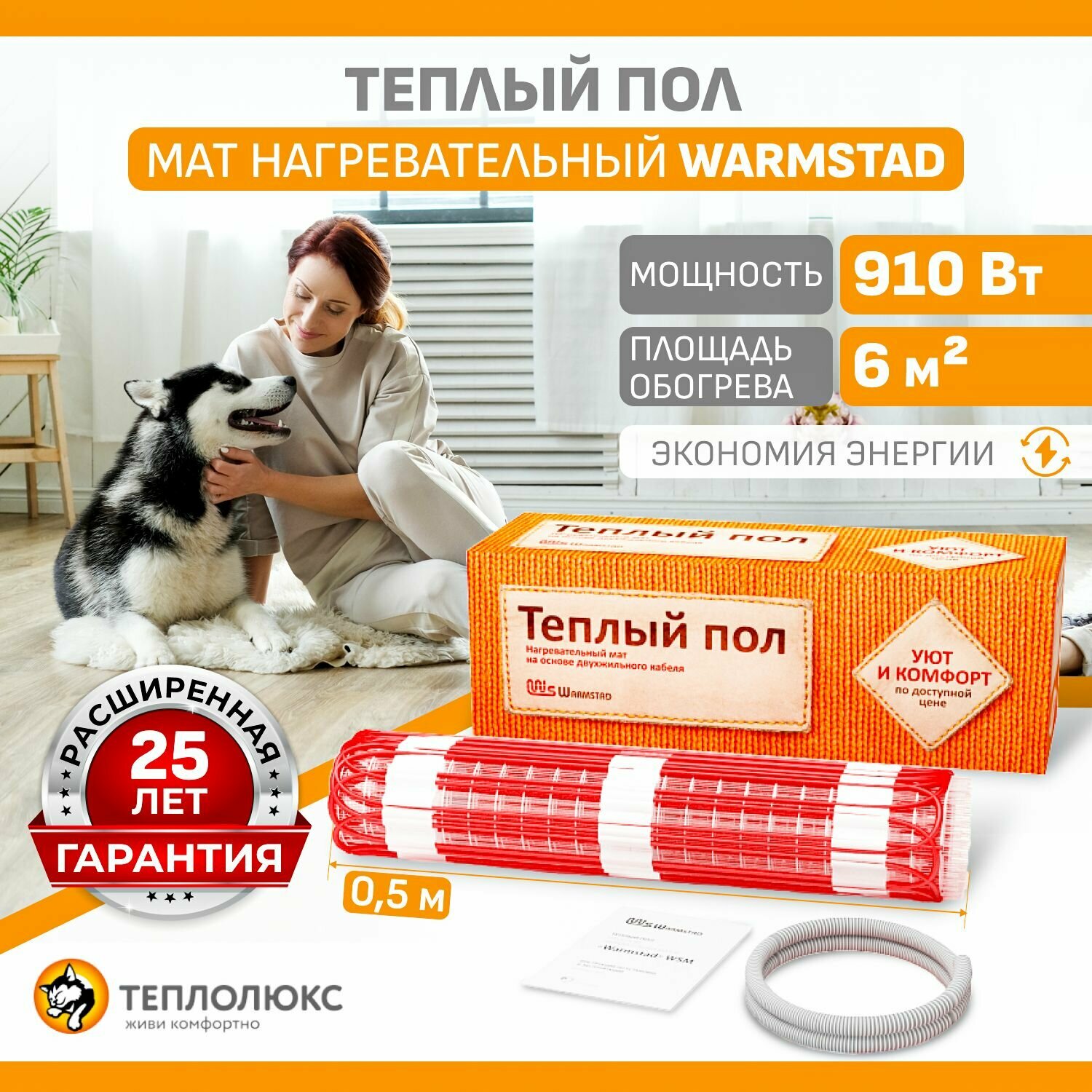 Купить Универсальный нагревательный мат Warmstad WSM 910 Вт 6,00 кв.м с тонким двухжильным кабелем, удобной фиксирующей сеткой для быстрого и надежного монтажа теплого пола под любые напольные покрытия