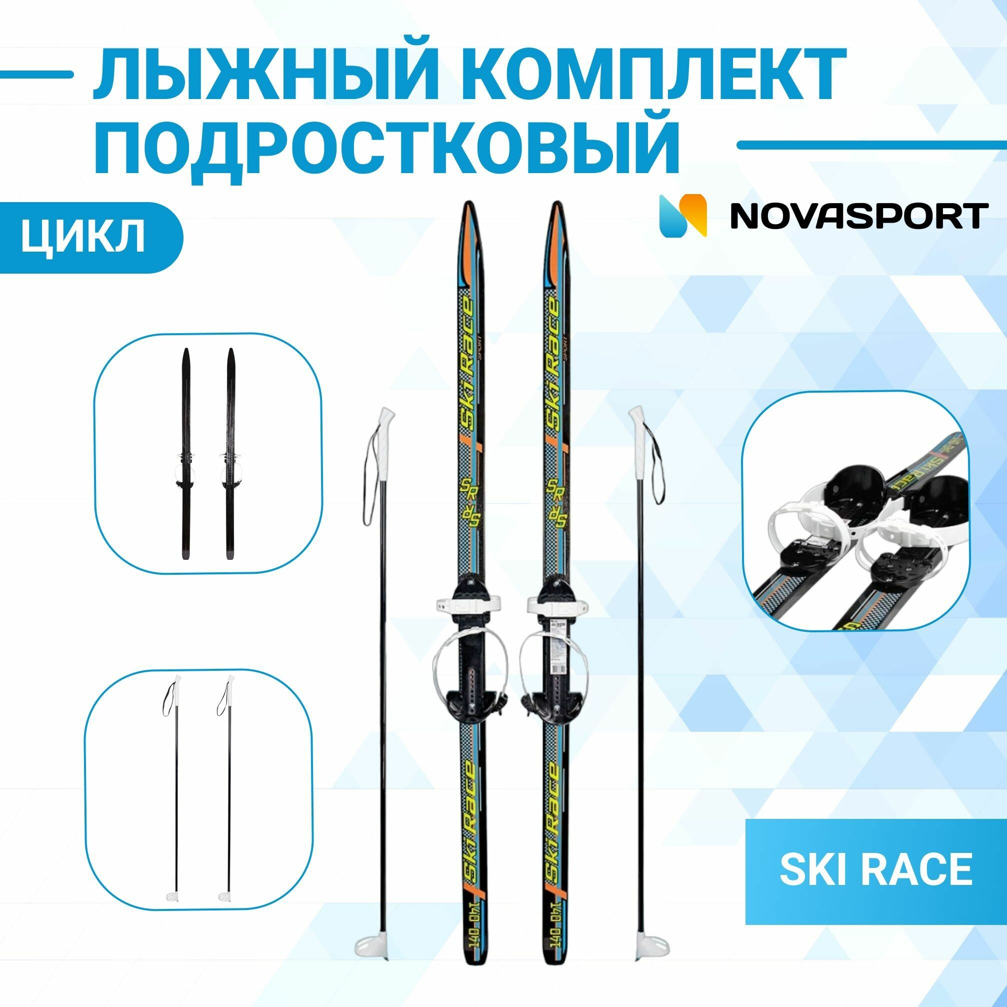 Лыжи Цикл "Ski Race", подростковые, с палками, 140/105 см (332485-00)