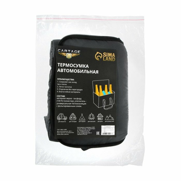 Cartage Термосумка Cartage Т-15, серая, 10 л, 26х19х19 см