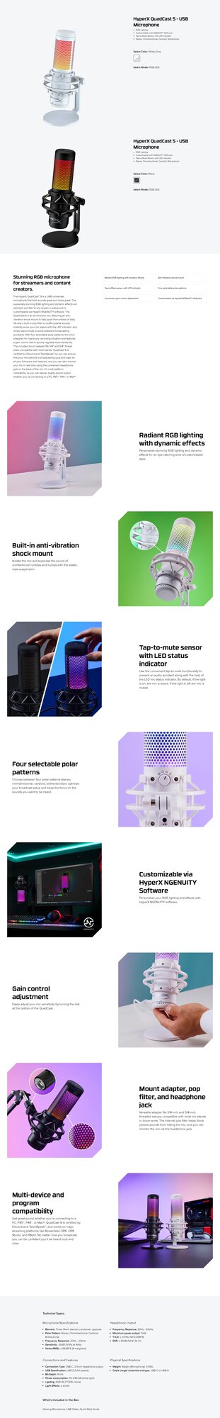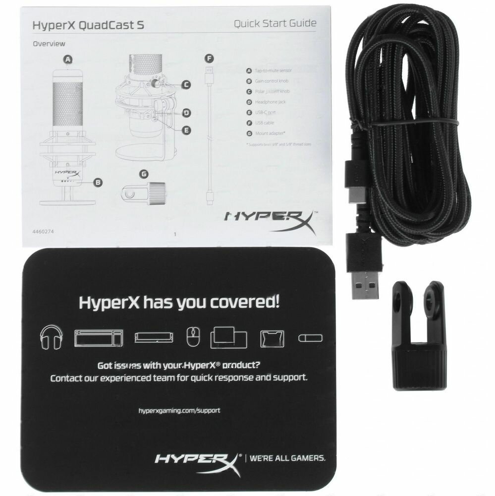 Микрофон HyperX QuadCast S черный, проводной, настольный, -36 дБ, от 20 Гц до 20000 Гц, кабель - 300 см, jack 3.5 мм, USB интересное: