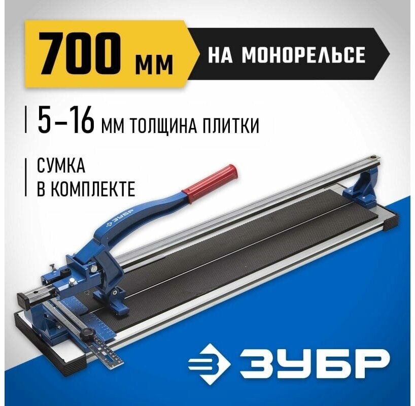 ЗУБР 700 мм, 5 - 16 мм, монорельс, усиленная платформа, плиткорез на подшипниках (33193-70)